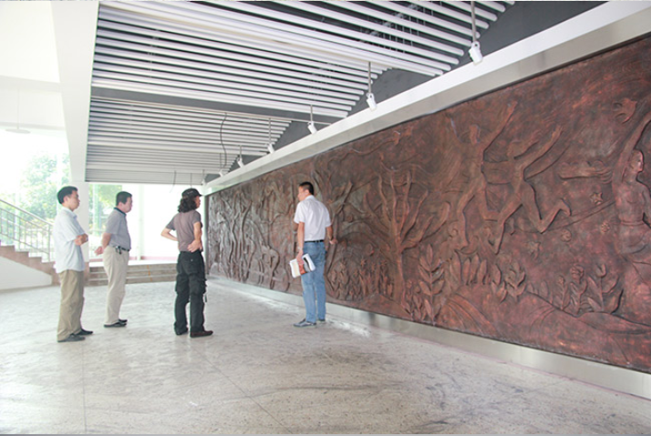 1、創(chuàng)意草圖 2、泥塑小稿 3、翻模 4、制作樹脂(玻璃鋼)定稿成品 5、成品(作品)深化放大樣 6、翻制鑄模 7、制作蠟型 8、化銅鑄造 9、噴砂打磨 10、表面處理(①拋光②烤漆③化學(xué)著色) 11、吊裝運(yùn)輸 12、安裝 13、完成