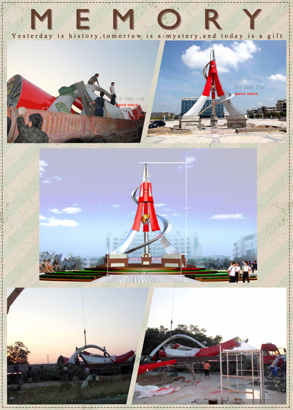 2013-6-10安放:安徽國際高業(yè)職業(yè)技術(shù)學(xué)院,不銹鋼雕塑,總高16米