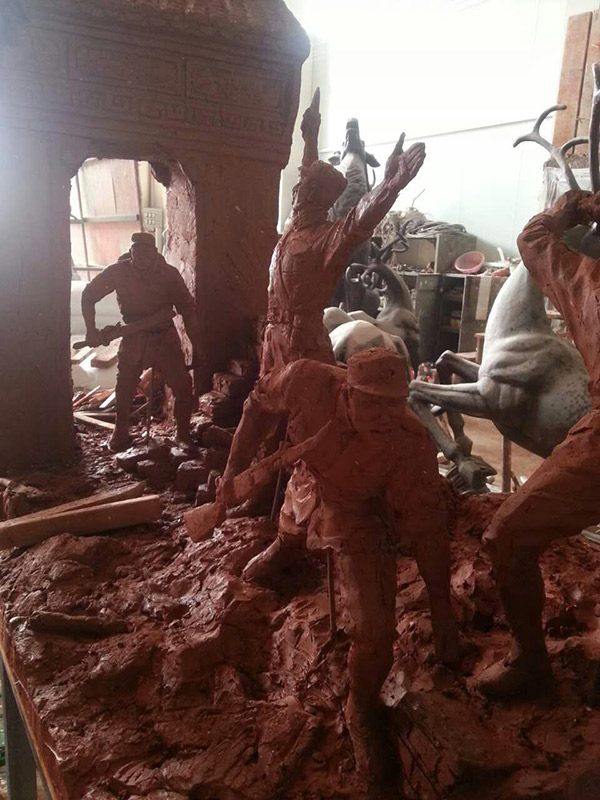 工程案例:抗戰(zhàn)紀(jì)念館花墻門大刀戰(zhàn)雕塑泥雕