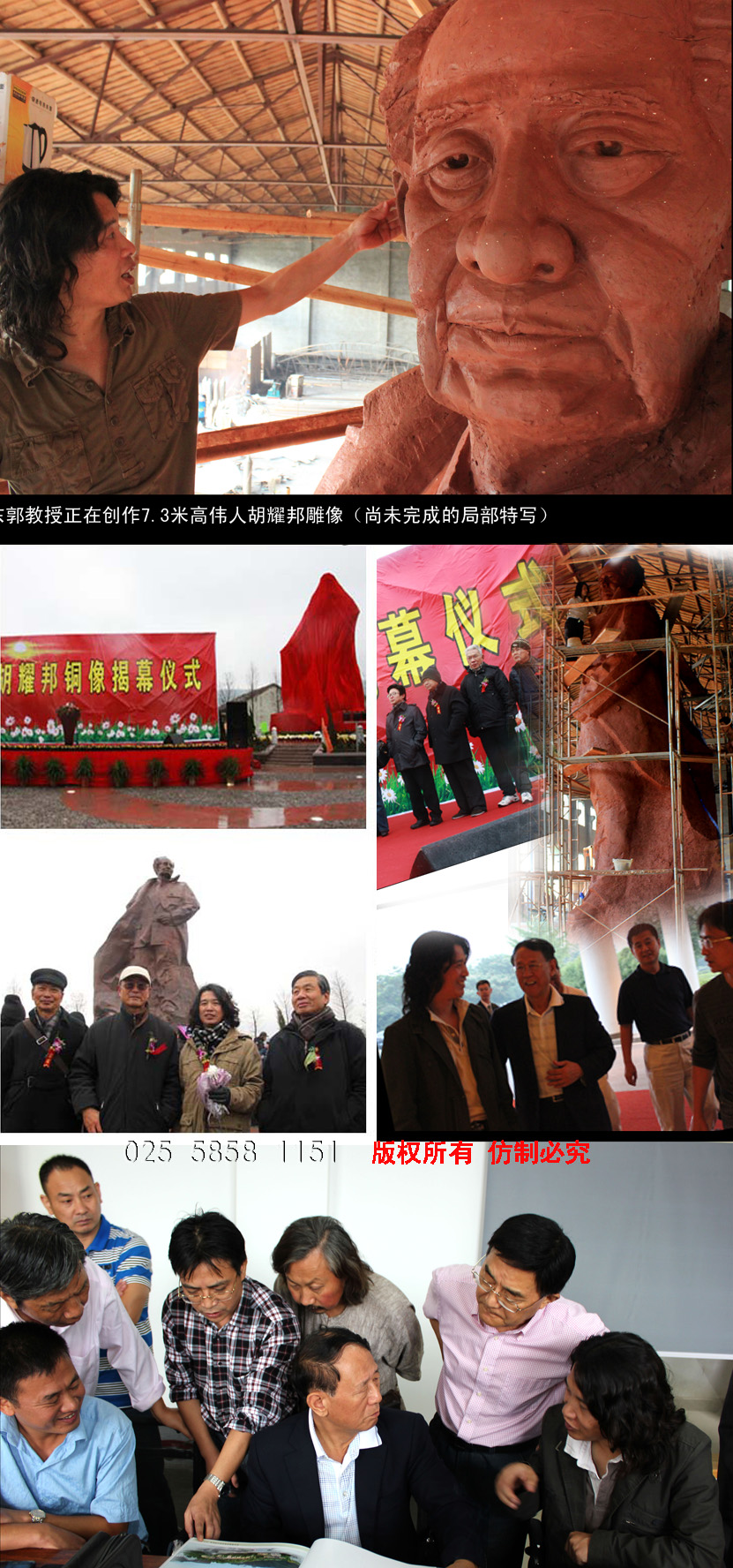 原中共中央統戰部副部長、全國工商聯黨組書記胡德平和江蘇文化界人士集體合影東郭教授正在創作七米三高偉人胡耀邦雕像(尚未完成的局部特寫)